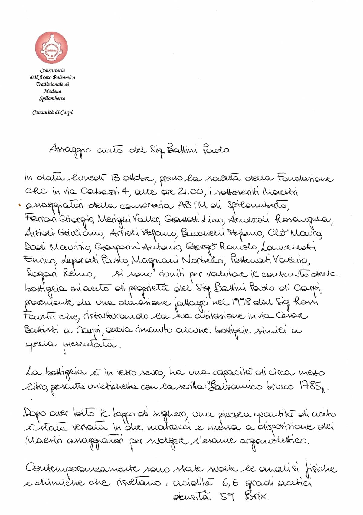 Una serata e un aceto da ricordare.